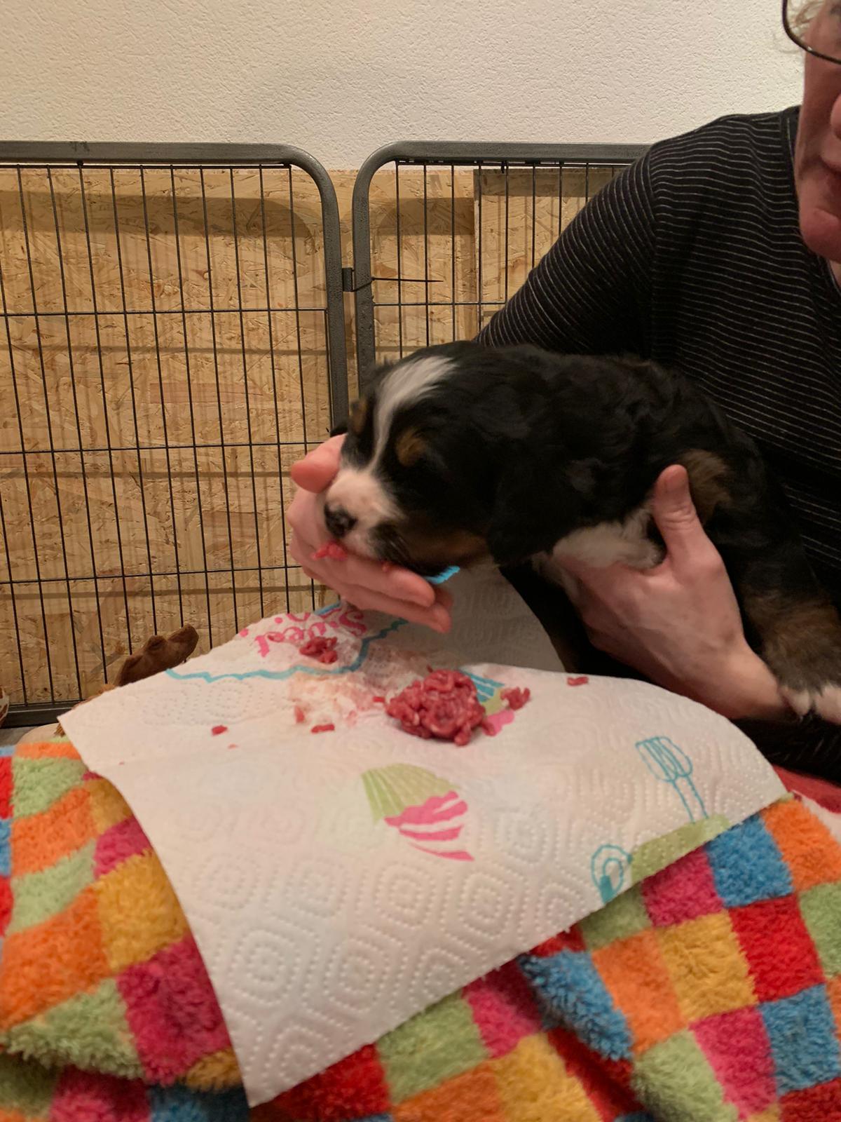 Mama Elly entwöhnt die Kids allmählich von der Milch - die spitzen Welpenzähnchen sind etwas unangenehm.